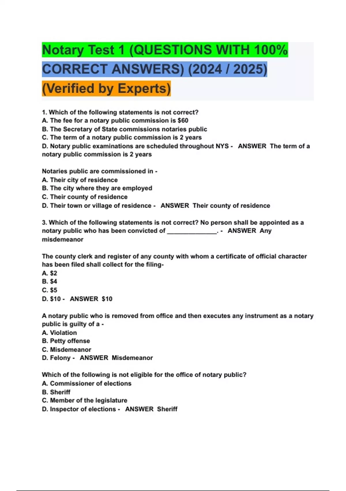 Notary Public SelfTest Question and answer 2023 verified Notary , Our comprehensive study materials, practice tests, and expert guidance will help you ace the exam and become a certified notary public. You can find information on exam dates, exam entry dates, your results release dates, and other key learning dates on this page.